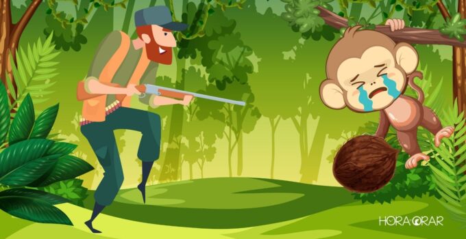 Cierta vez, un mono, buscando comida, vio algunos cocos en el suelo. Pronto se dio cuenta de que tenían dos pequeños agujeros y que estaban llenos de maní. El mono metió la mano dentro del coco y tomó un puñado de...