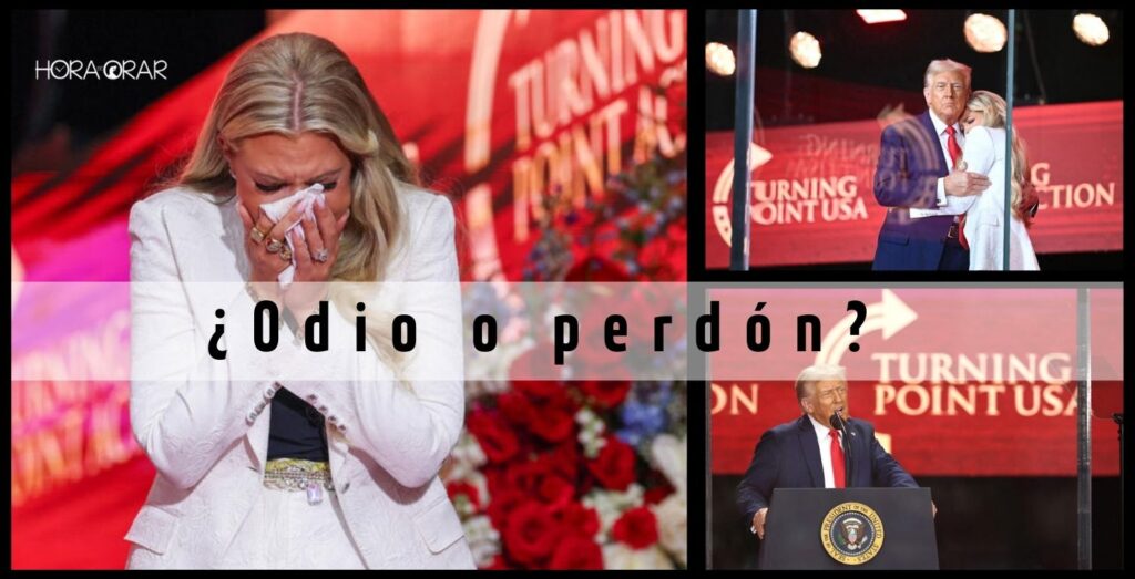 – “Mi esposo quería salvar a jóvenes como aquel que le quitó la vida. Yo perdono a ese hombre, a ese joven. Lo perdono porque eso fue lo que Cristo hizo, y eso mismo haría Charlie. La respuesta al odio no es odio. La respuesta que conocemos del Evangelio es amor, y siempre amor: amor por nuestros enemigos y amor por aquellos que nos persiguen.”