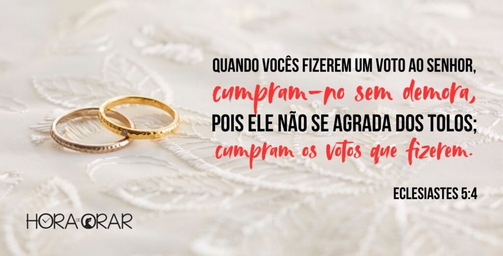 Oração: Senhor, ajuda-me a honrar cada voto que fiz diante de ti e diante das pessoas. Que eu não seja apenas alguém de palavras bonitas, mas de atitudes fiéis. Dá-me graça para cumprir a minha parte, lembrando sempre da tua fidelidade. Amém.